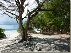 We drive to the north of the island, past the airport (quite an impressive little building for such a small island) and along the strip of land between the sea and the large lake. Suddenly the vegetation on the side bordering the sea opens up and a beautiful deserted beach appears, with storm clouds in the distance.